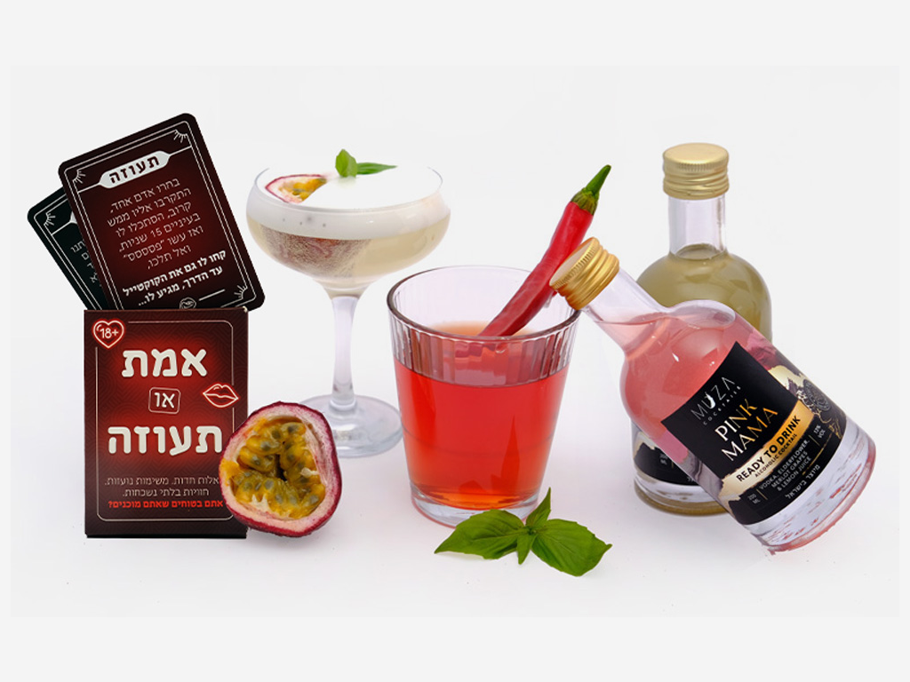 הקוקטיילים שלנו מיוצרים מחומרי גלם איכותיים בלבד, עם שילובי טעמים מדויקים ובלתי נשכחים, כאלה שמצליחים לעורר רגש, שמחה ואנרגיה כבר בלגימה הראשונה. כאן כדי MUZA , בין אם אתם מחפשים מארז דייט רומנטי, מתנה מקורית או חוויה מושלמת לאירוח להפוך כל רגע שלכם למיוחד ולרגיש קצת יותר שמח, קצת יותר שלכם.